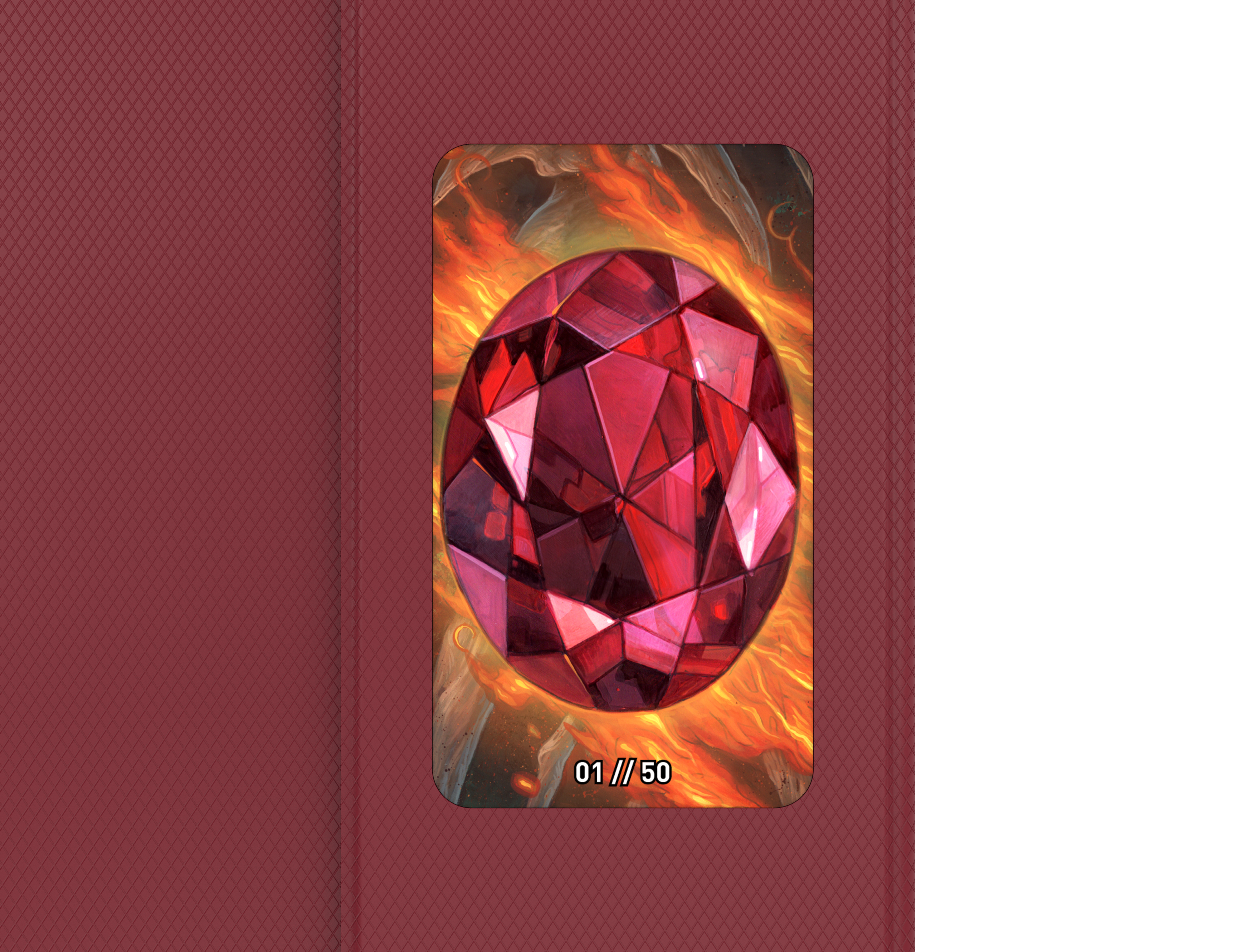 Our revolutionary playmat, now with stunning original artwork! Chris Seaman paints five precious gemstones, packed with elemental energy—plus a Lotus that combines all five gemstones together. As an extra bonus, you can combine all six pieces into one amazing panorama. Each design is limited to 500 pieces, with 50 units being specially serialized.