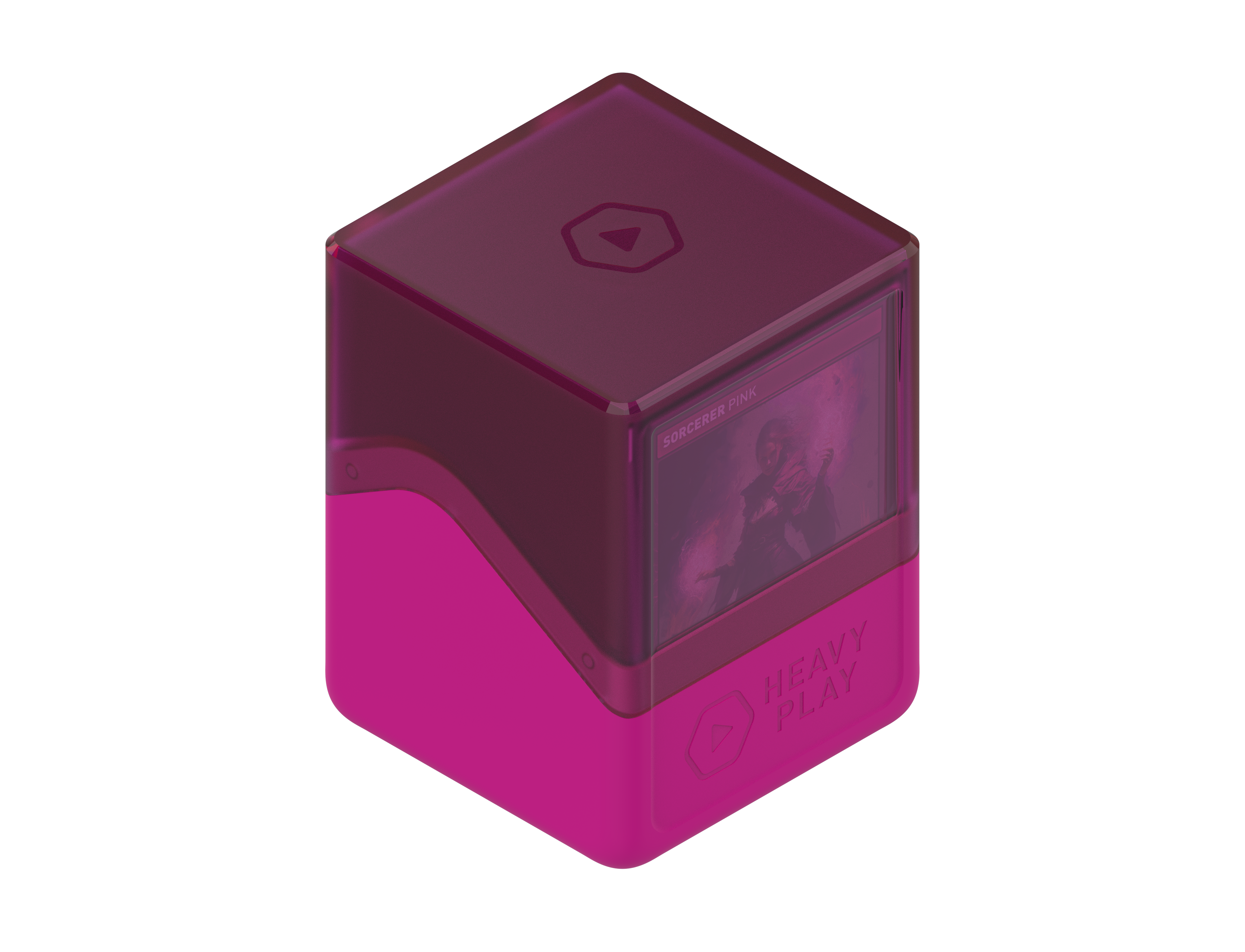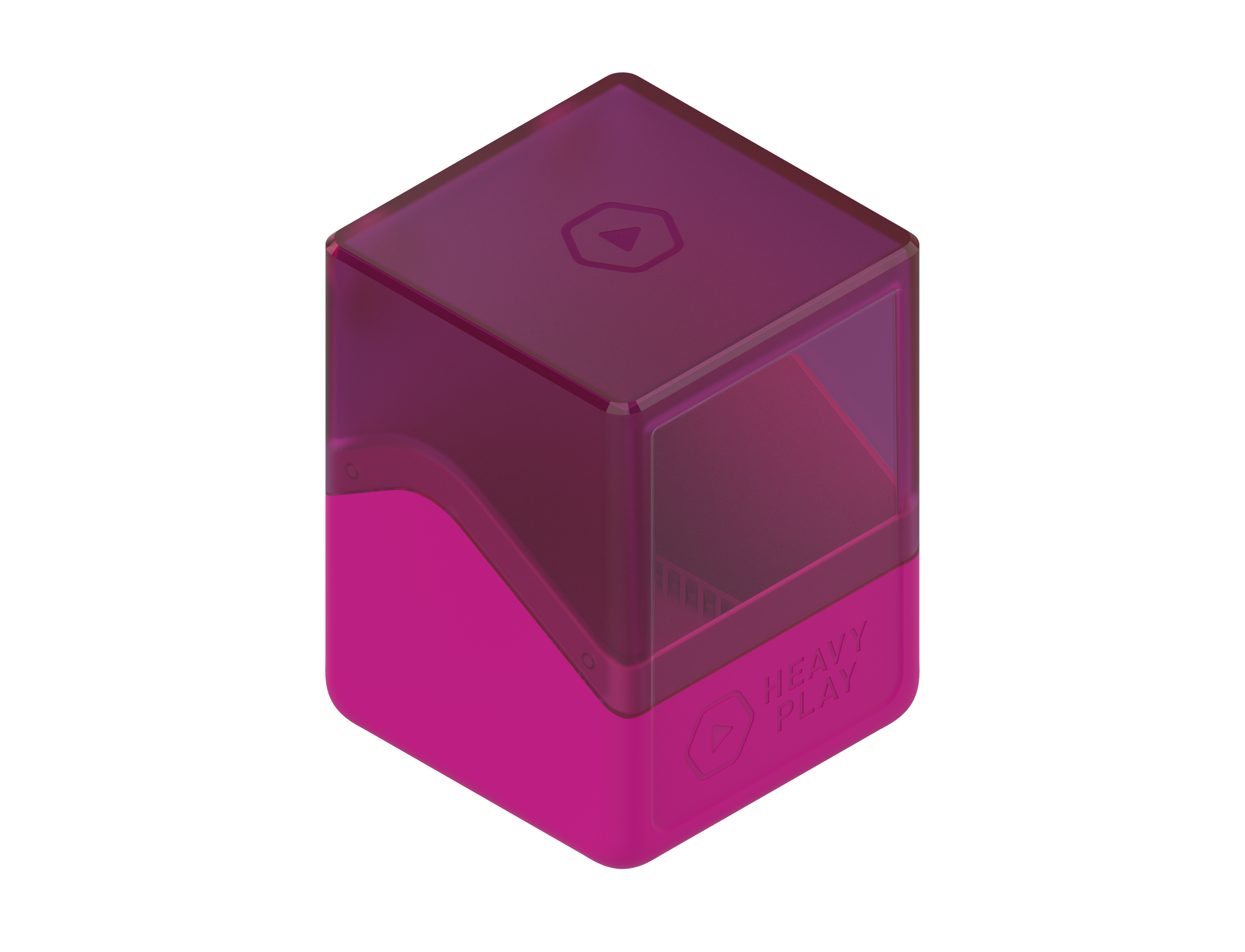The ultimate hard-shell deck box. Polished translucent front window to showcase your favorite card and quickly find the deck you're looking for. Secure snap closure—pivot to open. Shells magnetically dock when opened.