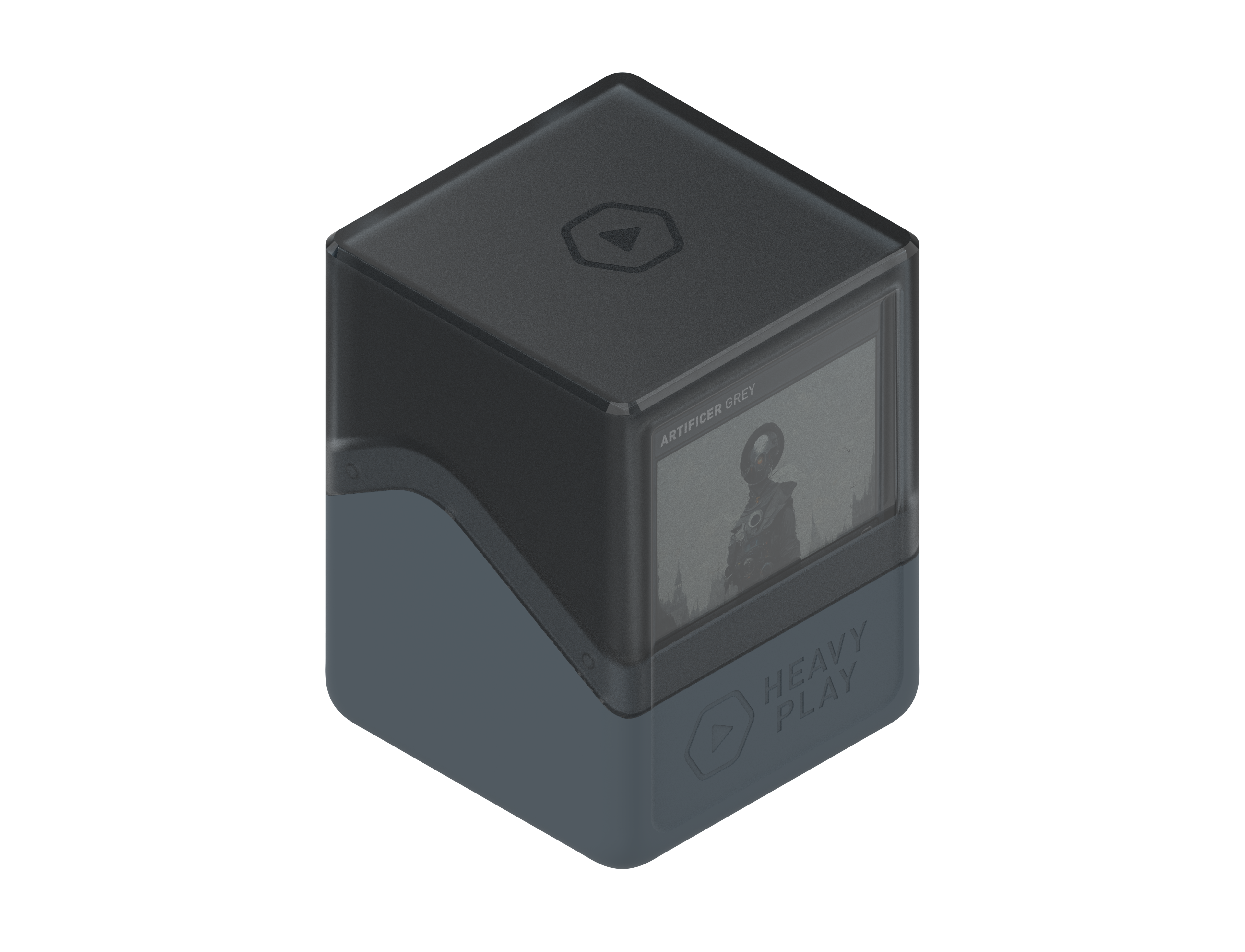 The ultimate hard-shell deck box. Polished translucent front window to showcase your favorite card and quickly find the deck you're looking for. Secure snap closure—pivot to open. Shells magnetically dock when opened.