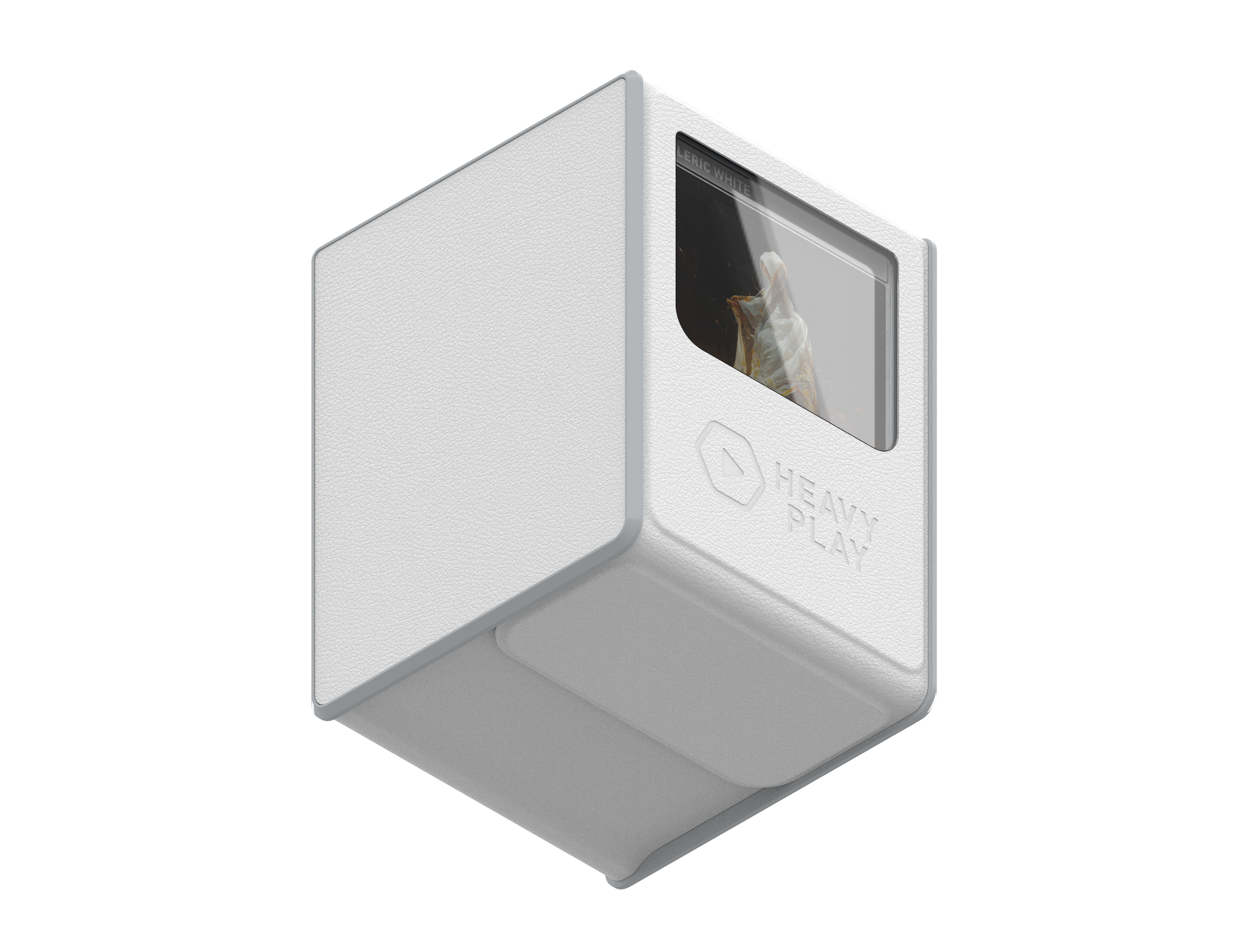 The ultimate flip deck box. Clear front window to showcase your favorite card and quickly find the deck you're looking for. Unique bottom closure magnets provide superior closure strength. Durable molded polycarbonate chassis. Welded vegan leather cover. Premium microfiber interior.